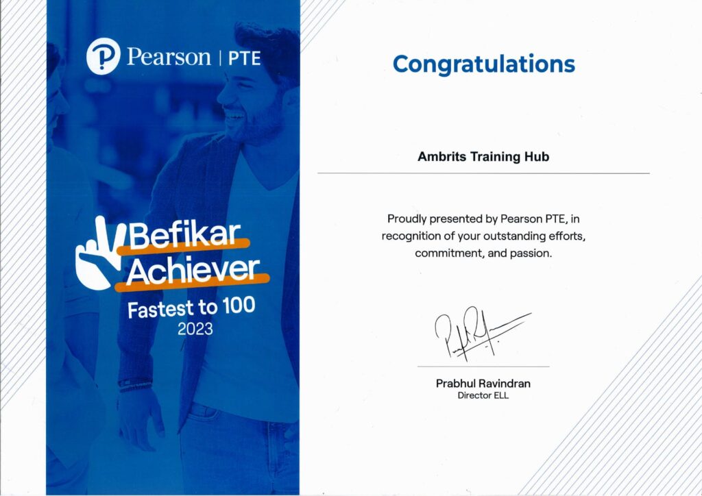 Pearson PTE Certification: As a Pearson-certified Institute, we specialize in delivering PTE training that emphasizes practical skills and strategic test preparation for academic and professional excellence.